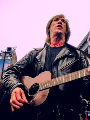 I took this photo on the day San Francisco legalized gay marriage. It was an unseasonably hot day and Johnny had on his leather jacket. Later, Johnny fell out to the ground and reportedly had a heart attack. EMTs worked on him for more than a half an hour to get his heart rocking again. While this was going on, a street preacher was standing nearby screaming, "God killed him for loving FAGS!" Nikon Coolpix L14 ISO 64 6.3mm 1/380 ƒ4.6